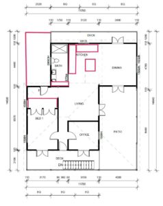 ” The first big step is underway. The draftsman has been out to measure the house a few weeks ago. I’ve finally got a look at the layout and the real sizes of the spaces. With these dimensions I can start visualising the new spaces I’m going to create.